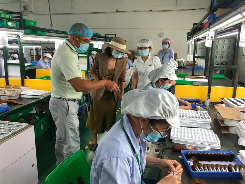 2020年06月05日,深圳市鵬灣公益基金會組織會員企業進行了互訪交流活動。基金會總顧問張奕炎、秘書長鐘燕萍偕同基金會會員、深圳市鹿言文化傳播有限公司董事長閆貴妃女士一行,拜訪了基金會理事林軍董事長及其企業雅香麗化妝用品(深圳)有限公司。